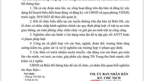 THÔNG BÁO VỀ QUẢN LÝ HOẠT ĐỘNG MÚA LÂN TRÊN ĐỊA BÀN XÃ
