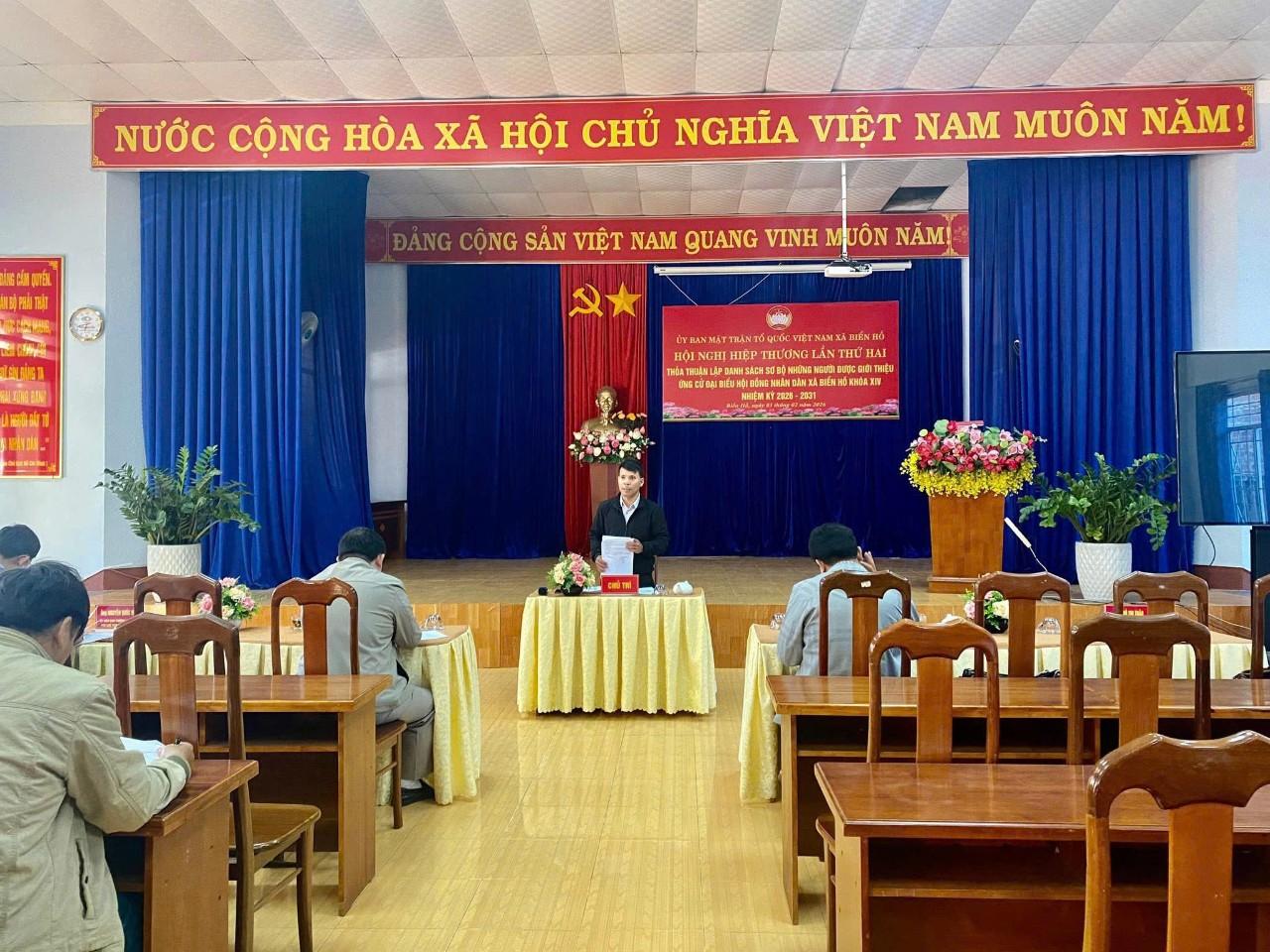Chủ trì hội nghị có Ông: Y Pren - Ủy viên Ban Thường vụ Đảng ủy, Chủ tịch Ủy ban MTTQ Việt Nam xã. Tham dự hội nghị còn có Ông: Nay Kiên - Bí thư Đảng ủy, Chủ tịch HĐND, Chủ tịch Ủy ban Bầu cử xã; Bà: Hồ Thị Thảo - Phó Bí thư Thường trực Đảng ủy xã; Ông: Trịnh Văn Sang - Phó bí thư Đảng ủy, Chủ tịch UBND xã; Ông Nguyễn Quốc Vinh - Ủy viên Ban Thường vụ Đảng ủy, Phó Chủ tịch HĐND xã; cùng các đồng chí lãnh đạo Trưởng Ban xây dựng đảng Đảng ủy, Phòng Văn hóa - xã hội xã, Ban Thường trực Ủy ban MTTQ Việt Nam xã và các tổ chức thành viên thuộc Ủy ban Mặt trận Tổ quốc Việt Nam xã.