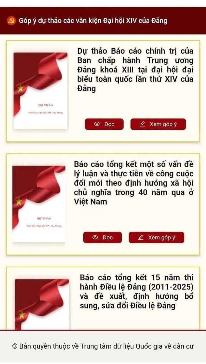 🍀Bước 3: Tại trung tâm ứng dụng, click vào Banner "Góp ý dự thảo các văn kiện Đại hội XIV của Đảng"